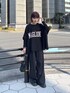 ロゴニットが主役のブラックコーデ♡ ポンチョニットは春まで着れる薄さで、今だと薄手ニットなのでアウターも刃織やすいです! ゆったりシルエットですがリブが長いのでスッキリ着ることができますよ◎ パンツは154cmでFサイズを着用しています! 内紐でウエスト調整しやすく、 ストンとしたシルエットが脚を長くみせてくれます☆ 内側が少し起毛になっているので暖かいですよ♡ インナーにはシルバーのラメロンTEを合わせています。 袖からチラッと見えるのがポイントで、 一枚で着てももちろん可愛いですしニットやスウェットなどのインナーに入れるのもオススメです☆ ——————————— ♡color♡ ニット→ブラック インナー→シルバー パンツ→ブラック(size: F) ——————————— snsもフォローしていただけると嬉しいです♡ Instagram: @doudou_mgm ———————————