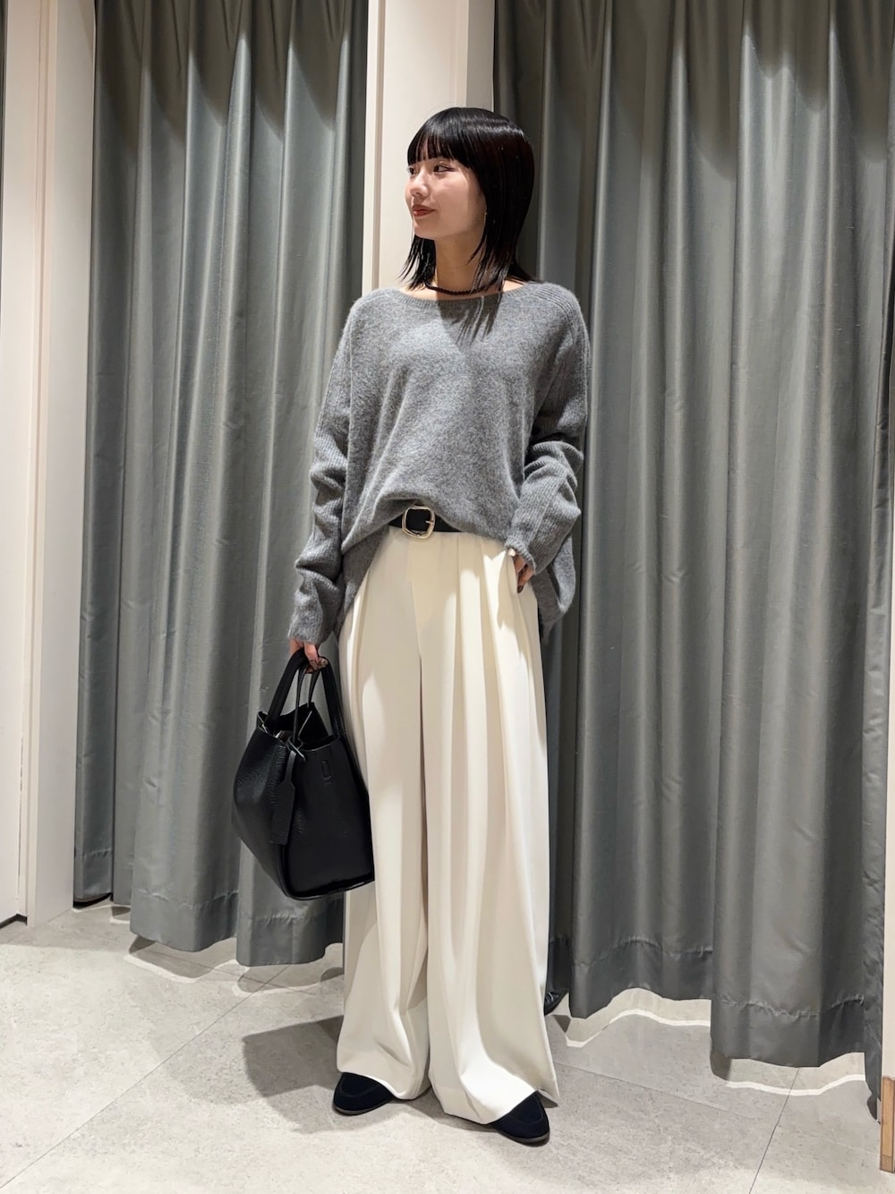 トップスはゆったりしたポンチョシルエットで シンプルだけどお洒落見えするデザインです✨ パンツは154cmでFサイズを着用しています! 落ち感が綺麗で、冬のニットも着膨れせずに スッキリと合わせることができますよ◎