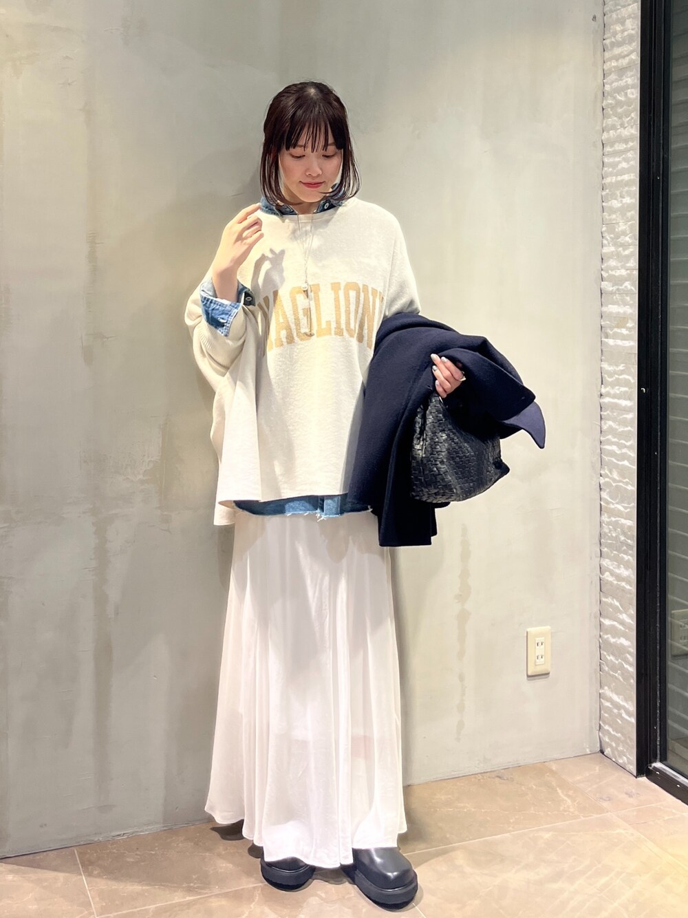 人気のロゴポンチョニット♡ 今からニットを買い足す方におすすめしたいアイテムです! ポイントは動画にも載せていますが、 ・身幅がゆったりしているけど落ち感があってすっきり見えしてくれる◎ ・腰回り、お尻もしっかりカバーしてくれる丈感 ・チクチク感ゼロで、春先まで着れる素材感 ・ニットとロゴの配色が可愛い! などなど、ノンストレスで着れて細見えも叶うニットです♡ オールホワイトでも可愛かったのですが、 私には少し綺麗めだったので デニムシャツをプラスしてみました! 色と素材感でメリハリが出て、こなれ感が出るので、シャツをレイヤードするのもおすすめです◎ ୨୧┈┈┈┈┈┈┈┈┈┈┈┈┈┈┈┈┈┈୨୧ snsも更新しています⑅୨୧⑅* ぜひチェックよろしくお願いいたします♥ instagram : @doudou_miku TikTok : @doudou miku