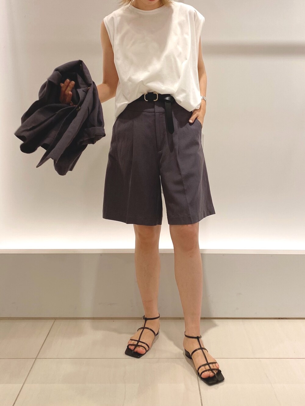 1つ前のpostのジャケットなしコーデです! イレギュラーヘムタンクはシンプルながら 肩を覆う幅にもこだわりが◎ 長さもあるので細身パンツなどはアウトで着るのもオススメですよ! 普段ショートパンツに抵抗がある方にも このシルエットなら穿きやすくてチャレンジしやすいと思います^^