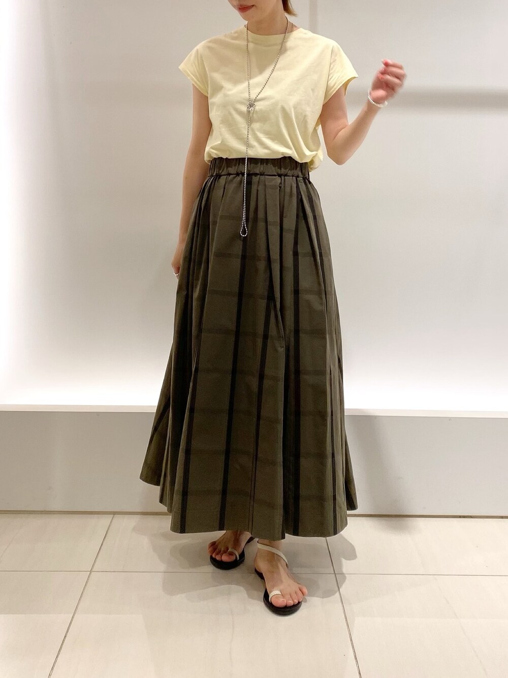ボリュームスカートにはコンパクトなカットソーがオススメ♪ オーガニックコットン使用で、肌に優しいフレンチスリーブです。 程よく二の腕をカバーしてくれるので1枚でも安心して着用できますよ!