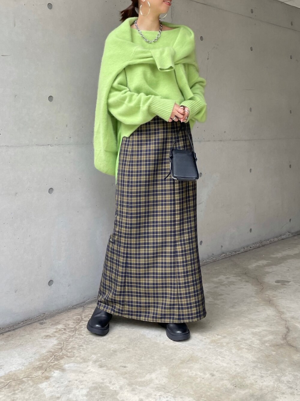 doudouminaのスカート「チェックマーメイドフレアスカート」を使ったコーディネート