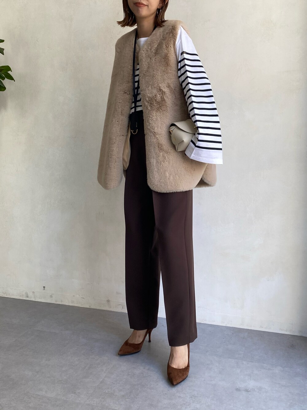 ボーダーとファーベストの合わせ可愛い! ブラウンで秋っぽコーデ♪ ———————————————————————— SNSも更新しています! チェックして下さると嬉しいです^^ Instagram >>> @doudou_minako
