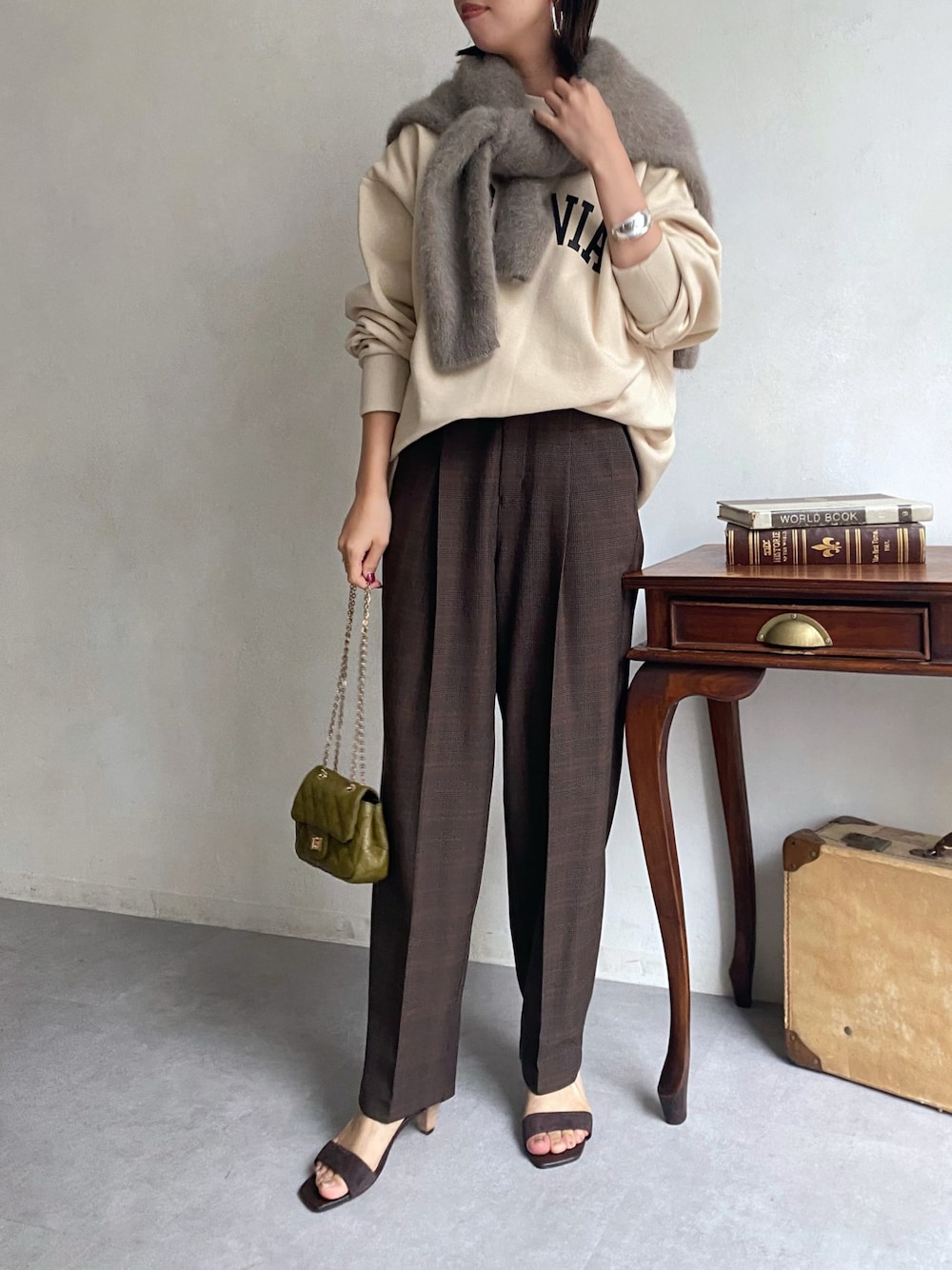 秋といえばチェック! さりげなくブラウン調のチェック柄は大人っぽく取り入れやすいです◎ ベージュのロゴスウェットにふわふわニットの肩がけで秋にピッタリなコーデにしました^^ ———————————————————————— SNSも更新しています! チェックして下さると嬉しいです^^ Instagram >>> @doudou_minako