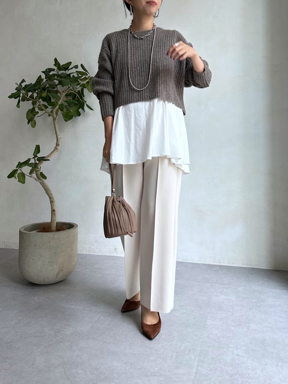 doudouminaのニット/セーター「ヤクショート丈プルオーバー+インナーセット」を使ったコーディネート
