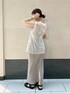 異素材がおしゃれなセットアップコーデ。