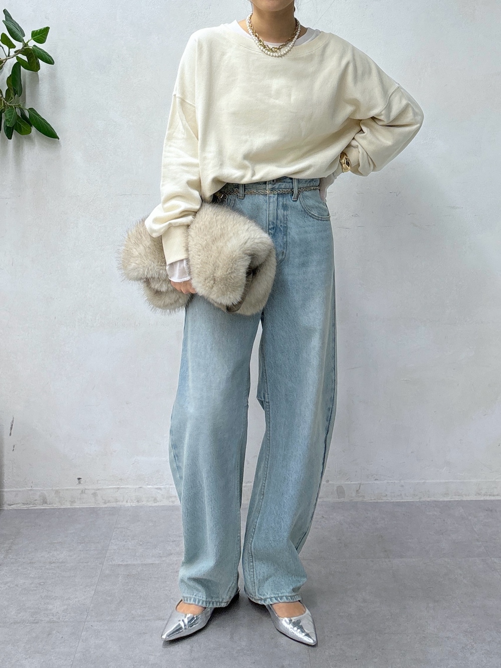 スウェットとデニムのカジュアルコーデ◎ シアーロンTのレイヤードがポイントです! ▶︎▶︎@doudou_rei