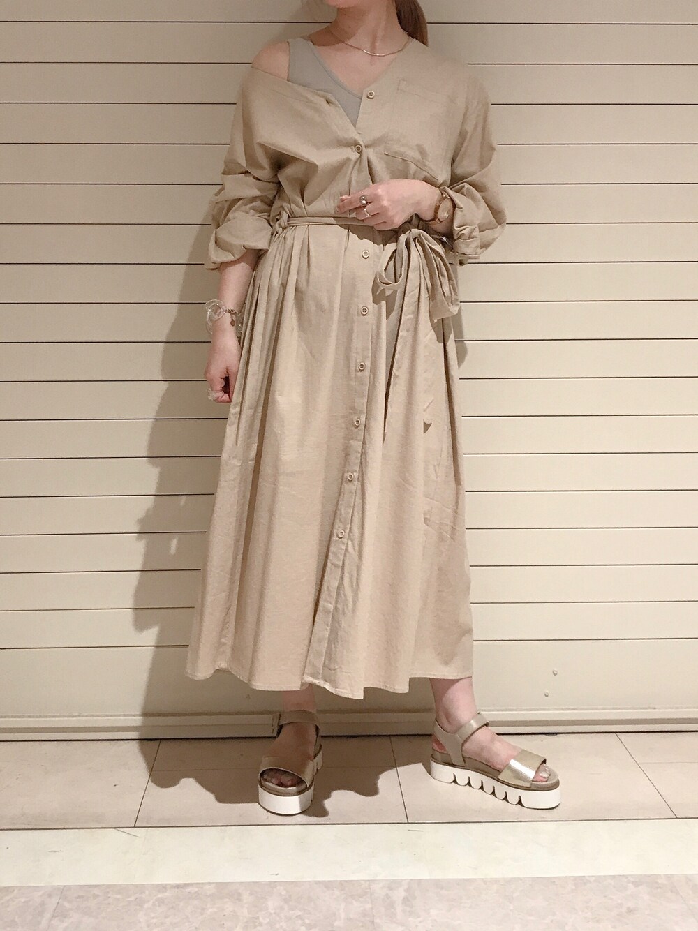 莉子 Rikoのワンピース「ロングシャツワンピース」を使ったコーディネート