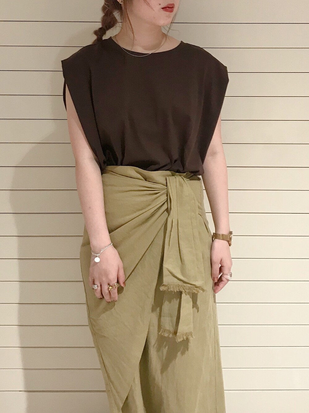 莉子 RikoのTシャツ/カットソー「タックドレーププルオーバー」を使ったコーディネート