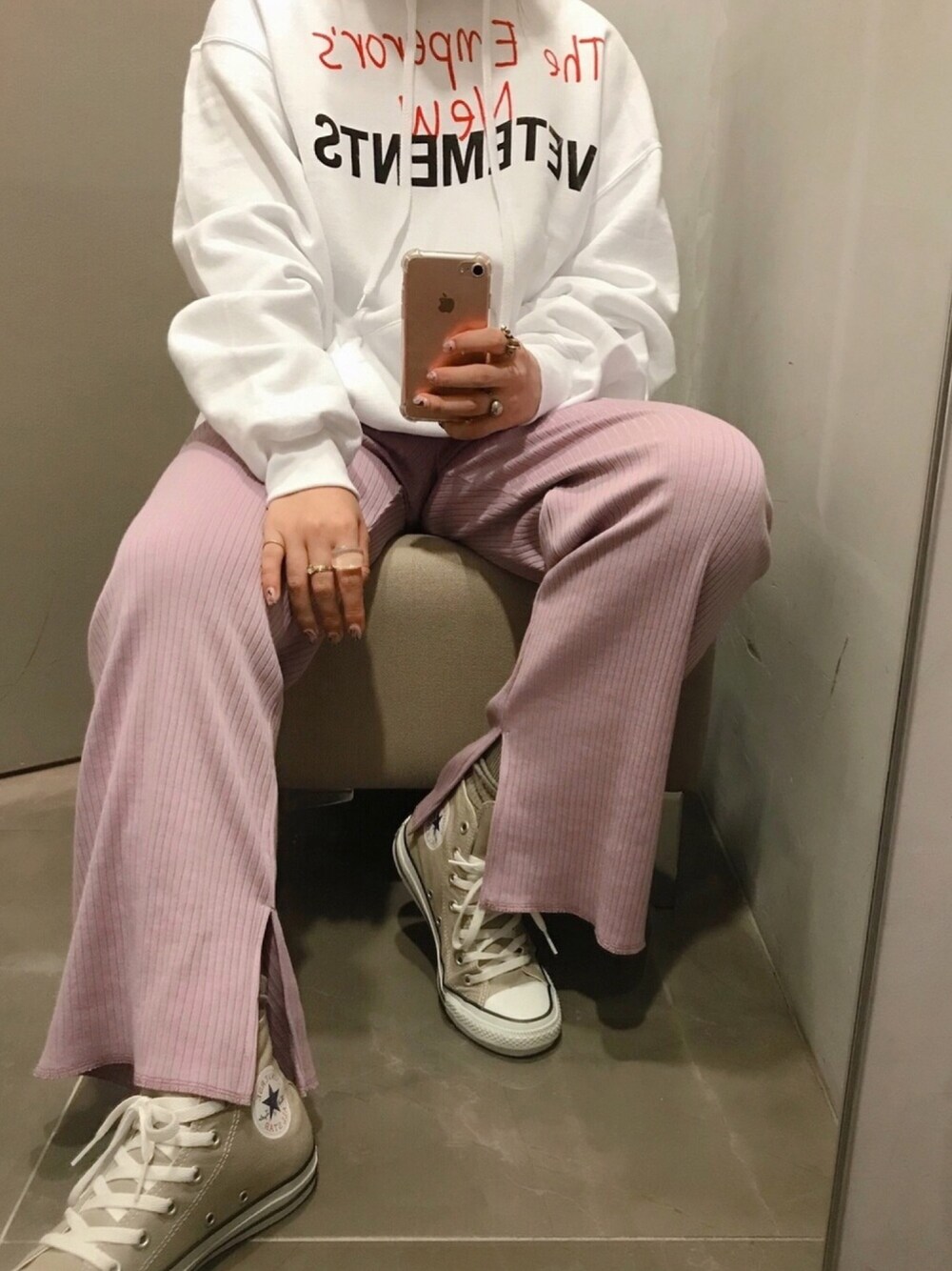 たまには鏡ごしを📸 ピンクパンツに 白のパーカーかわい🍑🍑🍑 instagram/@doudou_riko