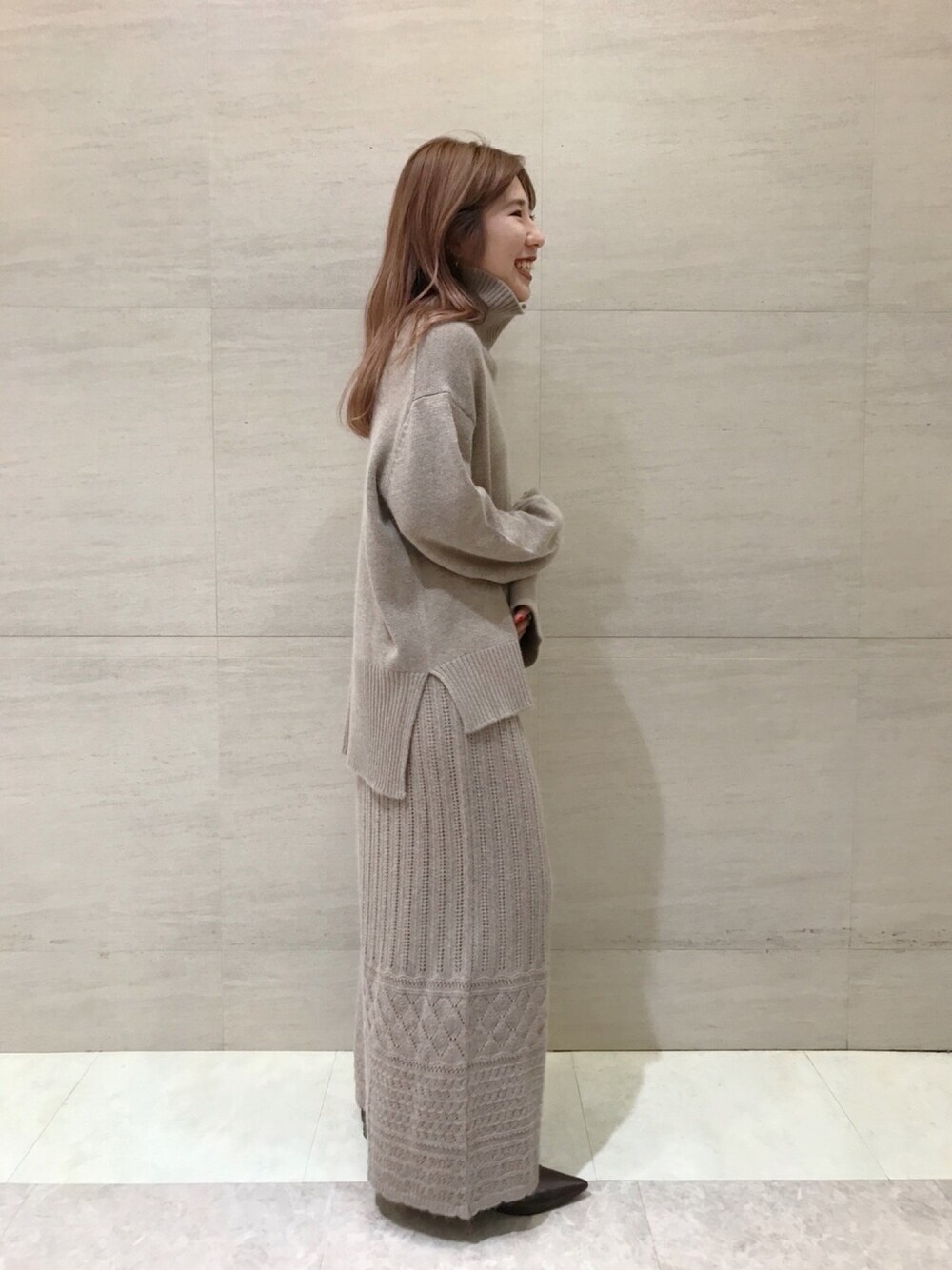 ベージュのニットのセットアップ🧶 めちゃくちゃ可愛い、、!! instagram/@doudou_riko