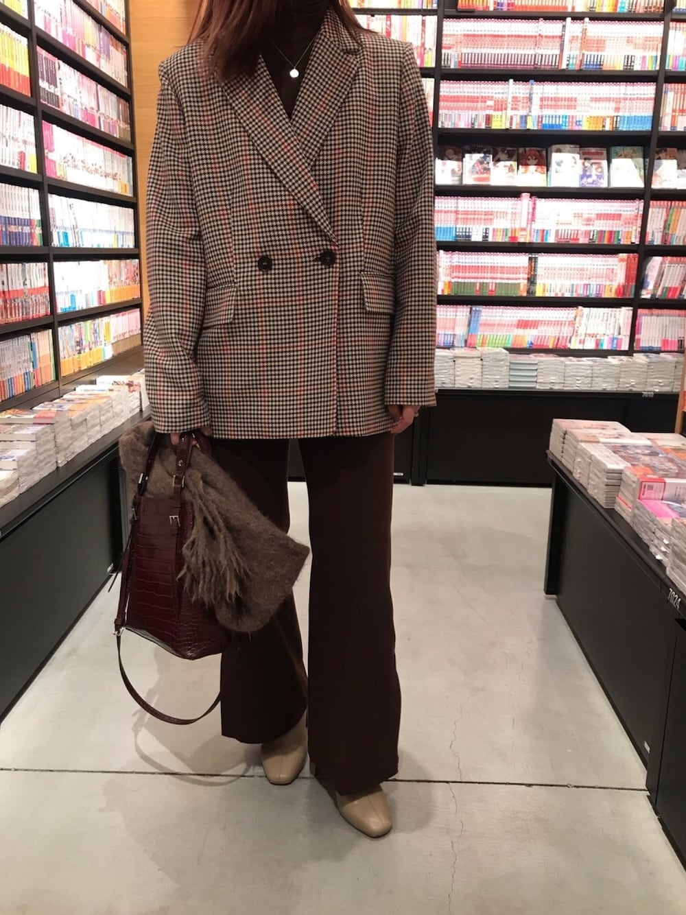 ブラウンコーデに チェックジャケット🌰🌰 寒くなってきたから、 スカーフかコートが必須に!! instagram/@doudou_riko