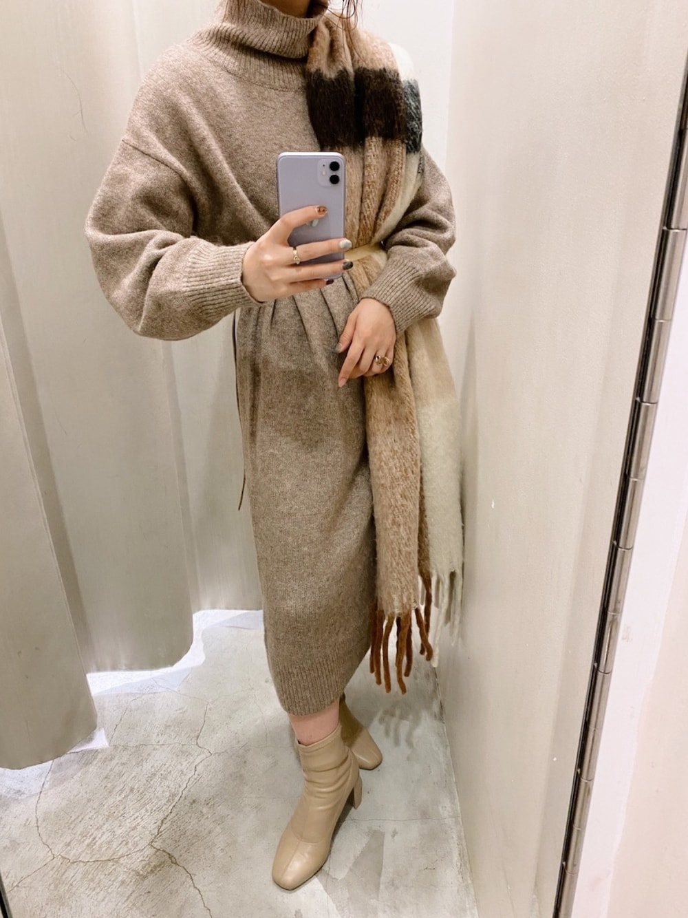 莉子 Rikoのワンピース「キャメルストレッチタートルワンピース」を使ったコーディネート