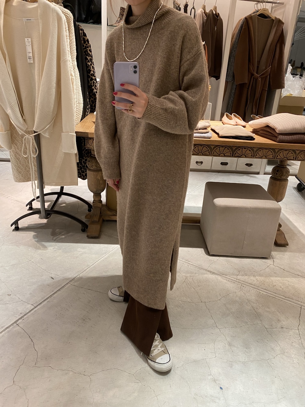 莉子 Rikoのワンピース「キャメルストレッチタートルワンピース」を使ったコーディネート