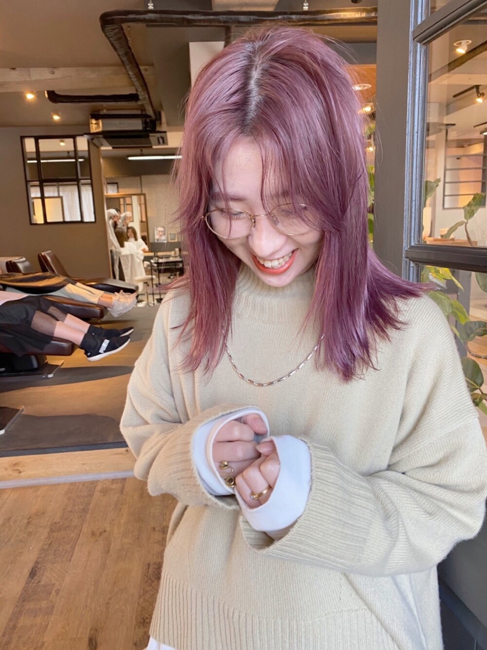 髪の毛染めた❤️❤️ イエローのニットお気に入り🧶 Tシャツと重ね着もオススメです!! instagram/@doudou_riko