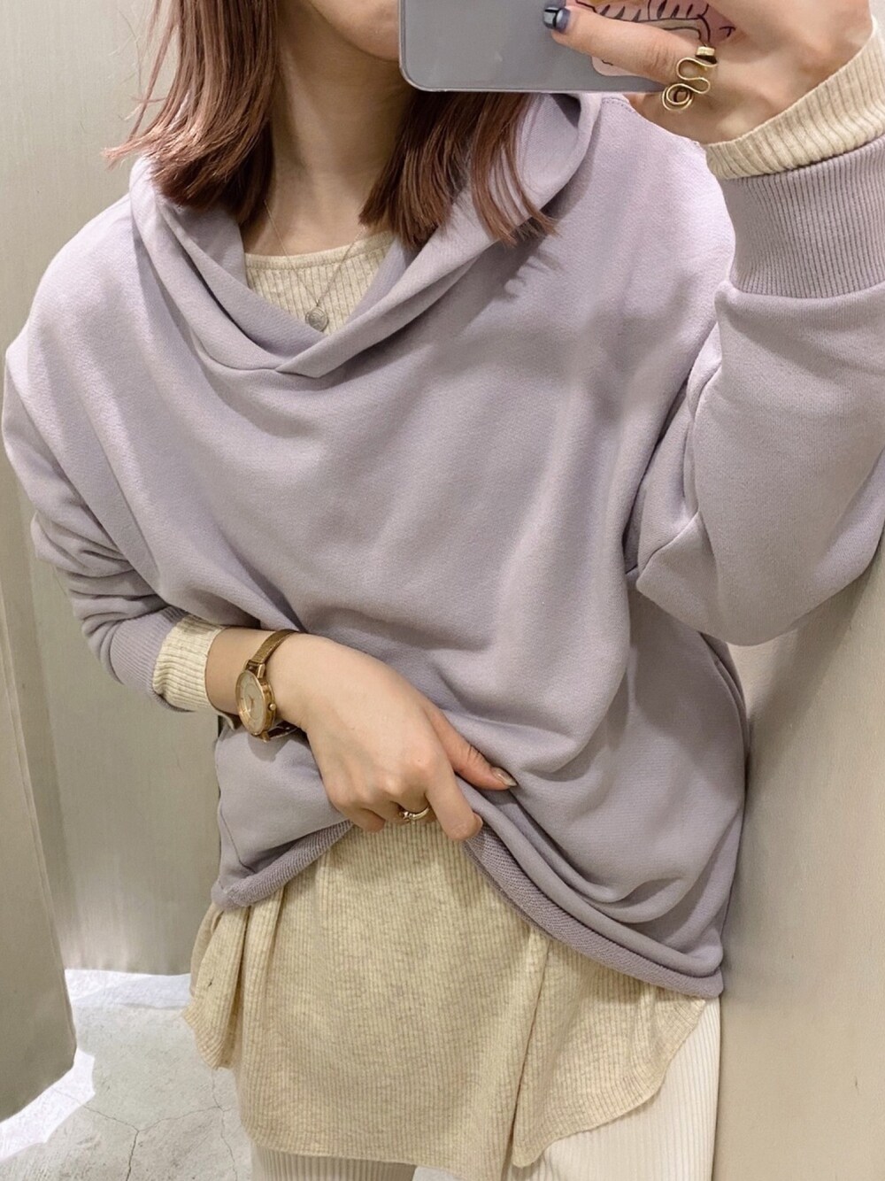 色味が可愛すぎるパーカー✌︎🥰❣️ Tシャツと重ね着もいいけど、 今回は、ボートリブプルオーバーを レイヤードしてみた!! instagram/@doudou_riko