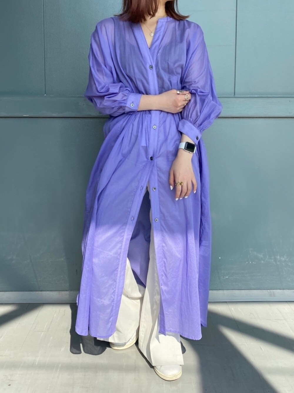 パープルコーデ💁🏼♀️💕 今季トレンドのシアー素材♡ かわいー!! ホワイトパンツをレイヤードしてきてみた✌🏻 instagram/@doudou_riko
