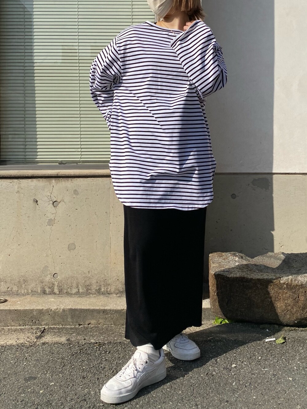 THE シンプルコーデ🤍🖤🤍🖤 ボーダーにスカートあわせ! シンプルなんだけど、 ボーダーがコーデのアクセントになってくれるから お洒落見えまちがいなーし😚🌈🌈 スカートは、セットアップのスカート着てるよう! instagram/@doudou_riko