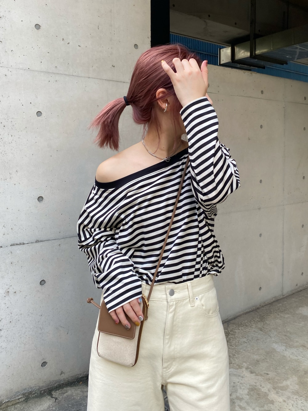 ボーダーにパーツパンツあわせ! 大人っぽく仕上げるために アクセは必須💞💞 instagram/@doudou_riko