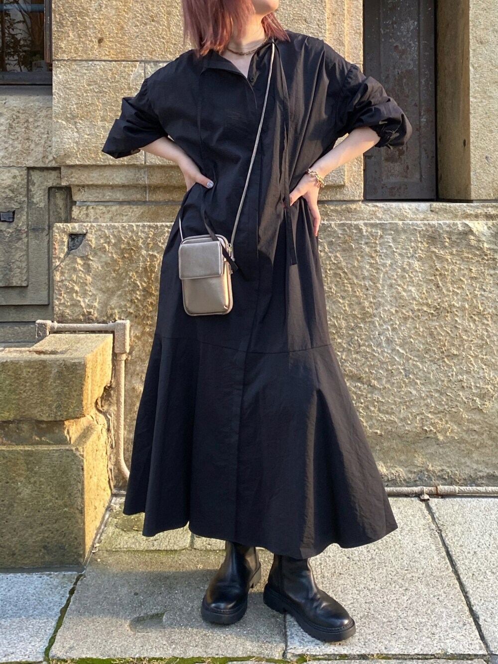 ブラックワントーン✨ デザイン性のあるワンピースは 一枚で様になるからいいよね! instagram/@rikooo315