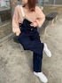 unisex overall×pink knit ゆるっとラフにね! instagram/@rikooo315