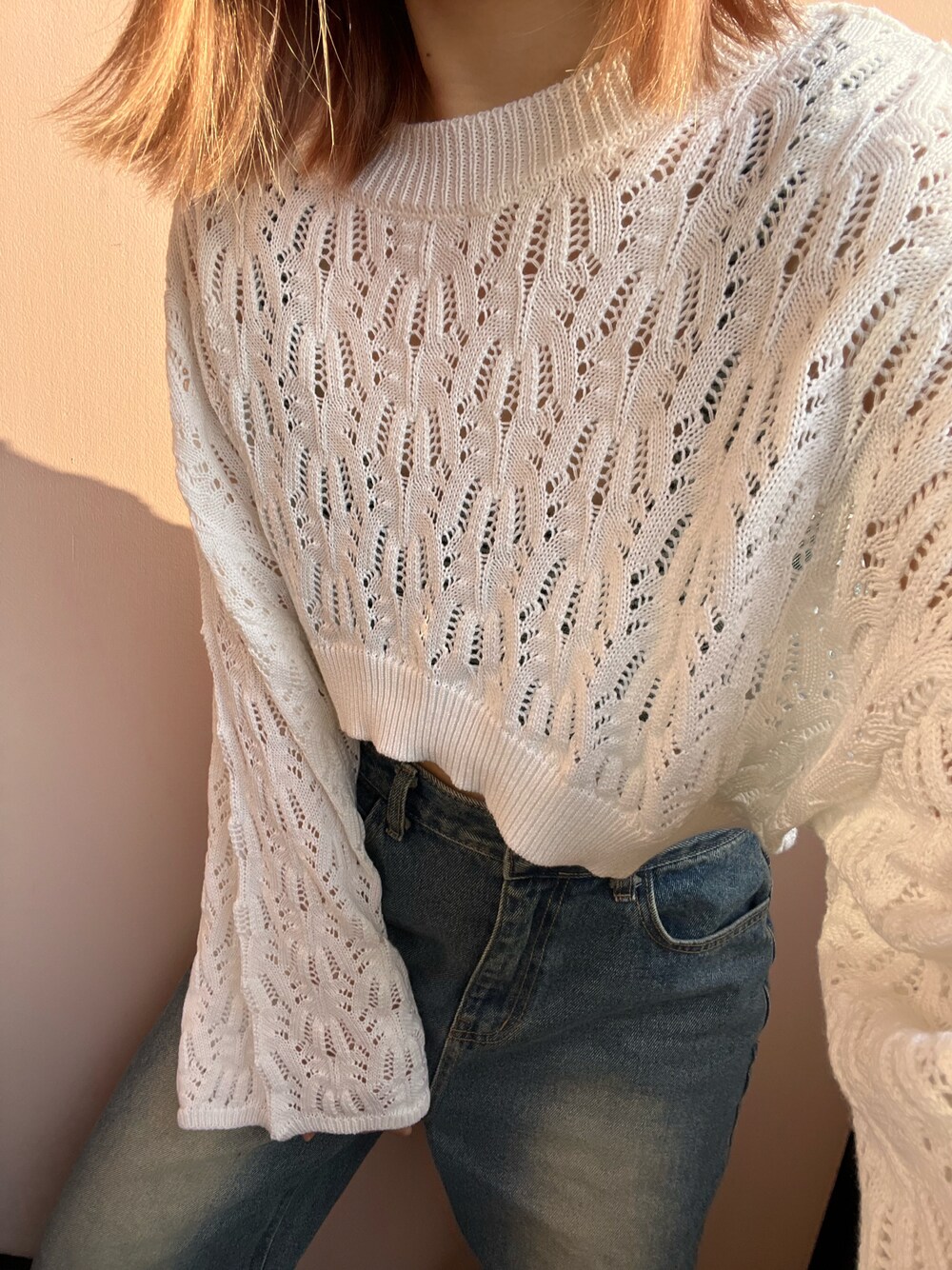 莉子 Rikoのニット/セーター「透かし編みショートニット」を使ったコーディネート