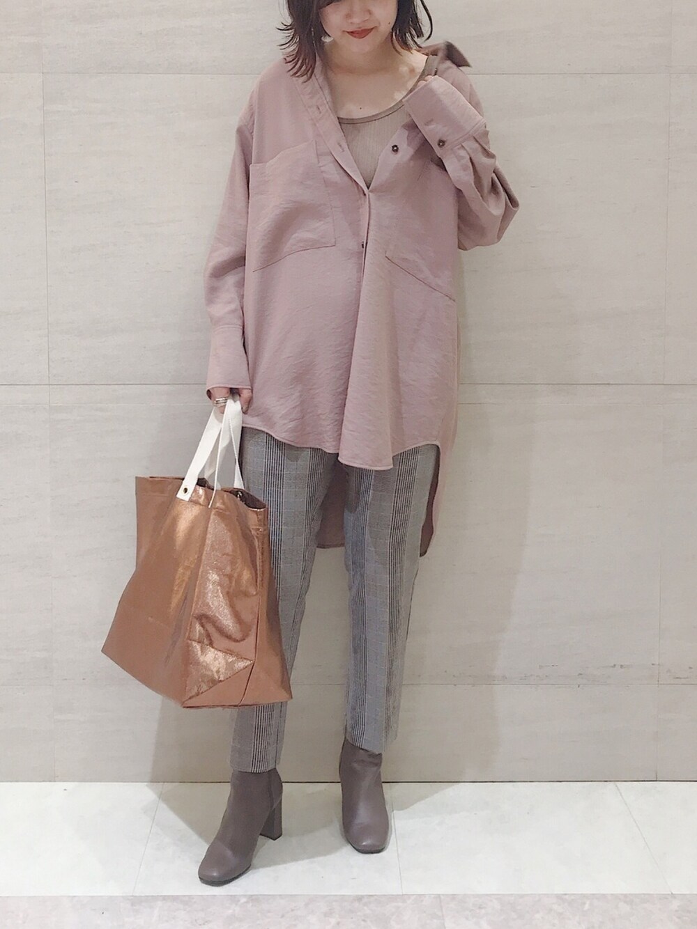 pink × check ☑︎ お尻まで隠れるロングシャツを チェック柄のテーパードで すっきり合わせてみました。 insta@___saku14_
