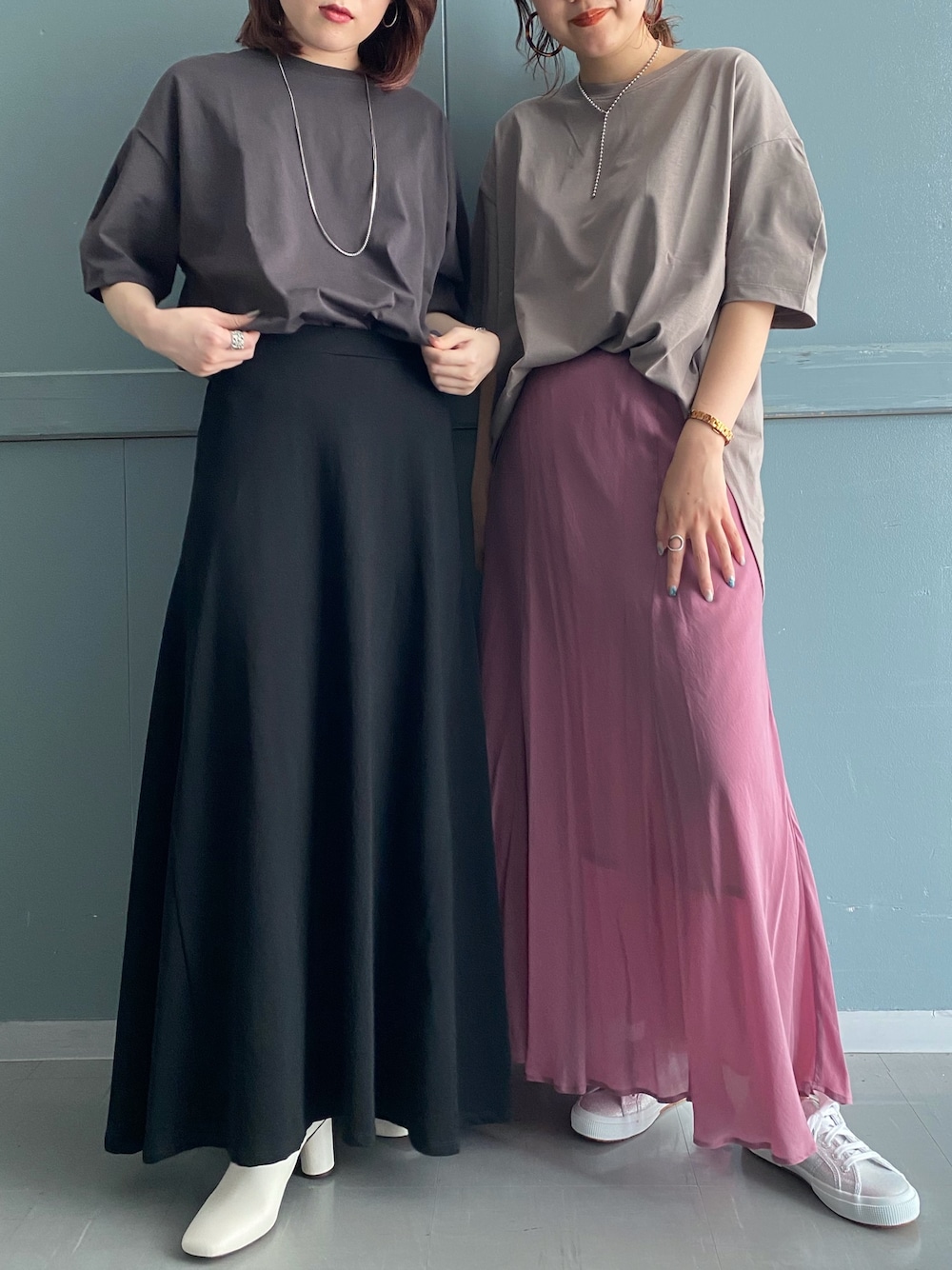 お揃いのトップスを使った コーディネート👭🏼 カットソーをスカート合わせで 大人カジュアルに着てみました。 見てくださりありがとうございます。 insta@___saku14_