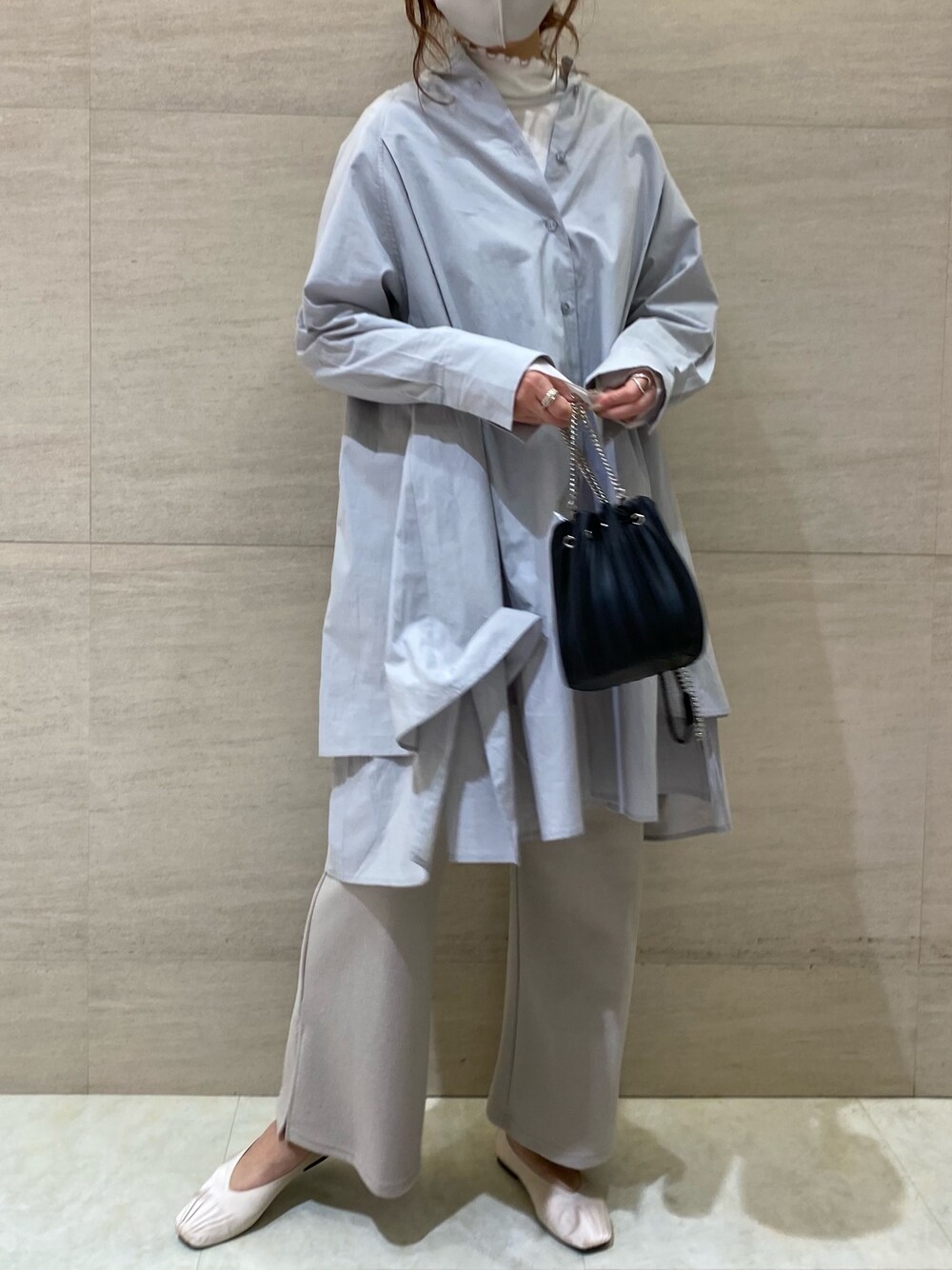 デザイン性のあるシャツ。 他のアイテムは、シンプルで同系色にするのを意識しました🐋🤍
