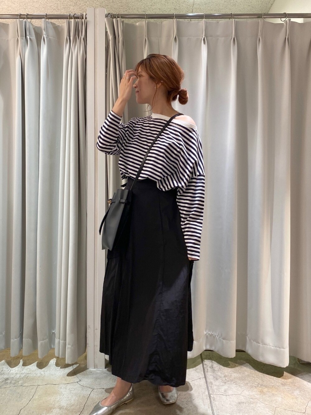 ボーダーでモノトーン🦓 カジュアルになりすぎないように ワンショルにして女性らしく❤︎