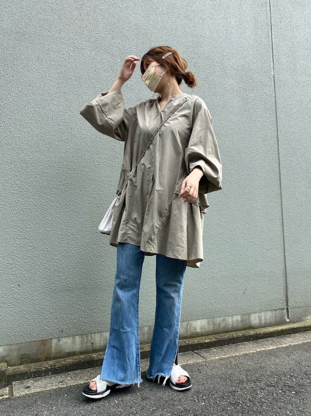 sakura(DouDou)のシャツ/ブラウス「【新色追加】ティアード2WAYチュニックブラウス」を使ったコーディネート