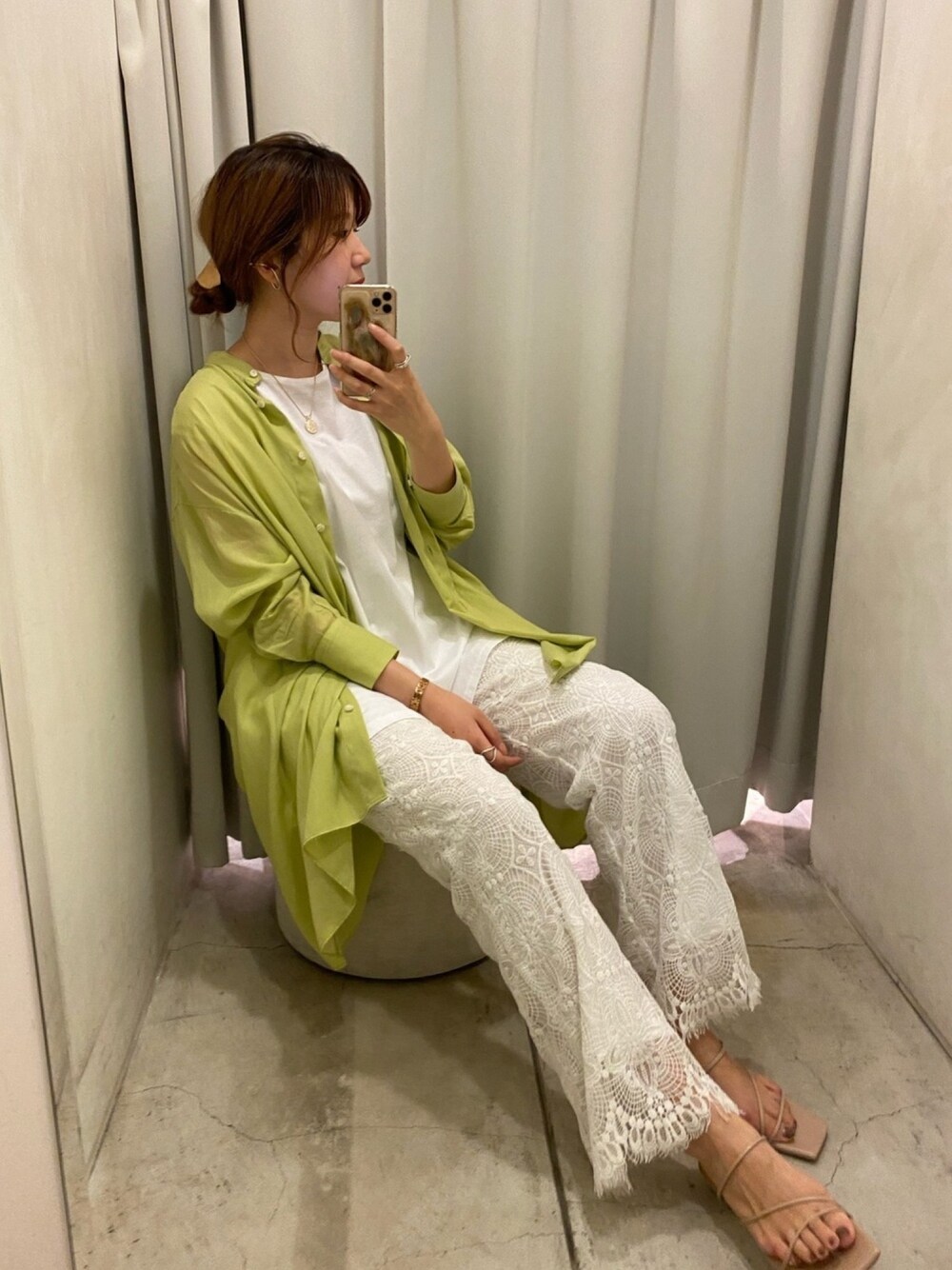 -------------------------------------- coordinate point ☑︎ホワイトコーデ ☑︎ピスタチオカラーを差し色で🍐 ☑︎レースの透け感が夏らしい◎ -------------------------------------- いつも見て頂きありがとうございます! instagramでは、より沢山の写真を投稿しているので そちらもみていただけたら嬉しいです♡ insta@___saku14_