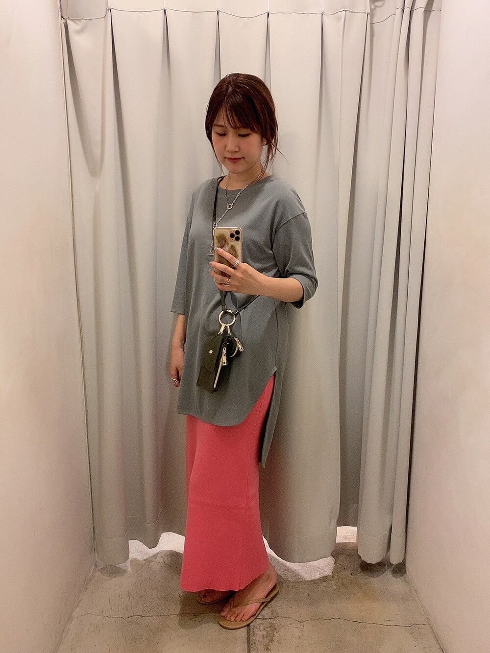 普段着なれない明るいピンクなスカートは ロング丈のトップスで面積を減らして挑戦しました💕💕🐘