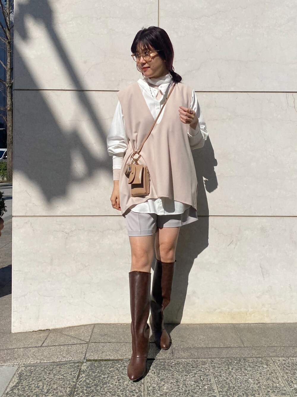 シアータートル+シャツ+ベストで 春のレイヤードコーデ🌸🍨