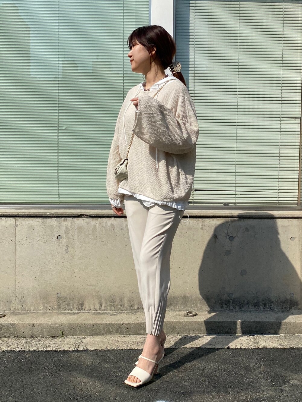 ホワイトコーデ。 中にさりげなく、トレンドのアノラックシャツを着てます💭
