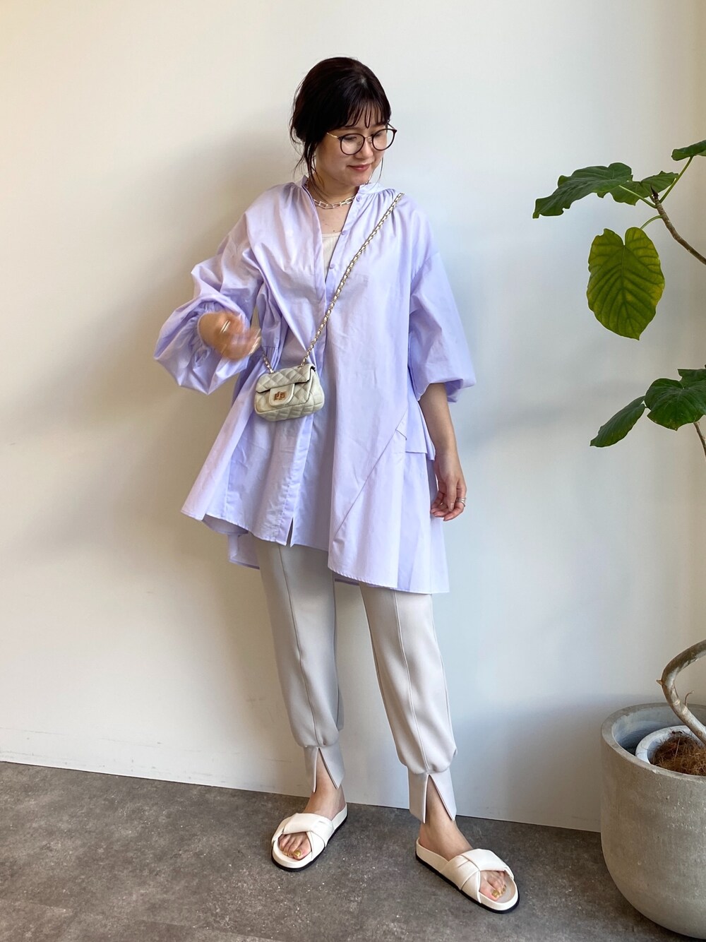 ラベンダーのブラウスをジョグパンツでカジュアルに!