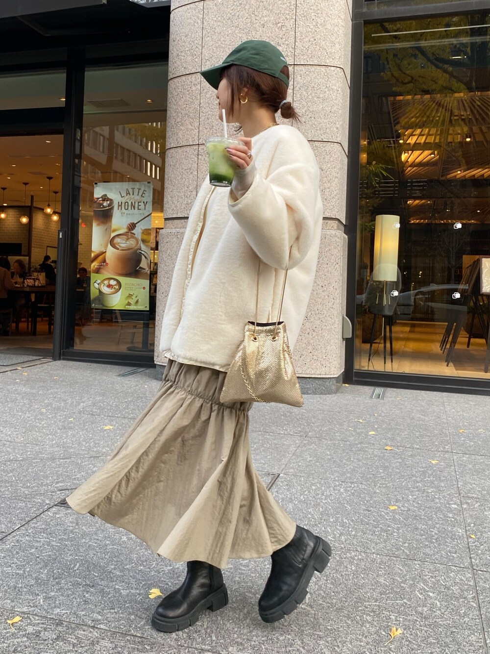 リバーシブルで楽しめるコートと ドッキングワンピで 楽ちんなお洒落見えコーデ🤍
