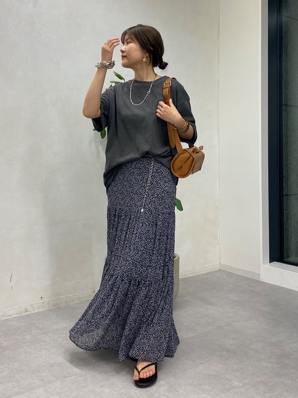 ヴィンテージのような風合いがかわいい ピグメントT カジュアルになりすぎないよう ボトムは柄のスカートであわせました◎