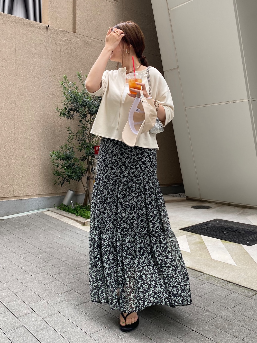 スカートにはスウェット合わせで カジュアルダウン◎ スリットプルオーバーのデザインが、顔まわりすっきりと見せてくれます✨