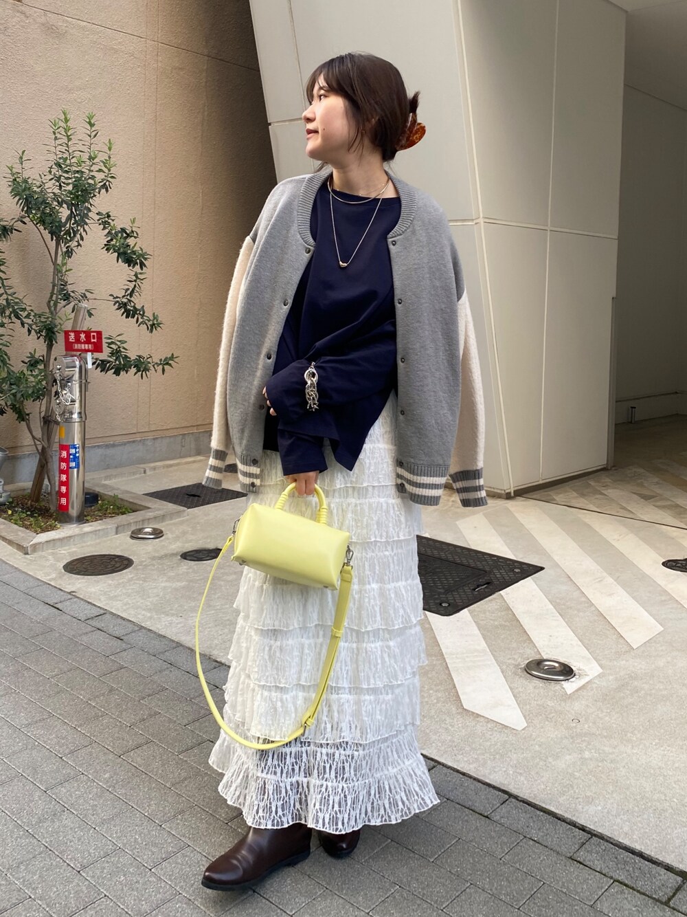 ネイビー×ホワイト×グレーに 差し色でイエローをとりいれた 色合わせもポイントのコーデです! レースのスカートは甘めですが 他をカジュアルなアイテムや 甘すぎない色を使うことで コーデが可愛くなりすぎないように意識しました◎ ざっくりスリット入りのロンTなので インしなくてもバランス良く着やすいのがおすすめです。 _______________________ [ロンT]color: ネイビーsize:フリー [スカート]color: ホワイトsize:フリー [スタジャン]color:グレーsize:フリー [バッグ]color:イエロー ________________________ いつもご覧頂きありがとうございます! 他のSNSも日々投稿をしているので ぜひそちらも見ていただけると嬉しいです◎ insta@___saku14_ WEAR@doudousakura TikTok@doudousakura