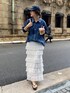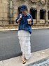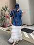 大人気のシアーデニムシャツ。 スカート合わせで、下半身カバーしたスタイリングが好きな私が着たいコーデです。 シャツの内側のボタンを留めて インしてる風に! かなり薄手なのでこれから夏まで着られます。 _______________________ [シャツ]color: ブルーsize:フリー [スカート]color: オフsize:フリー [バッグ]color: coming soon