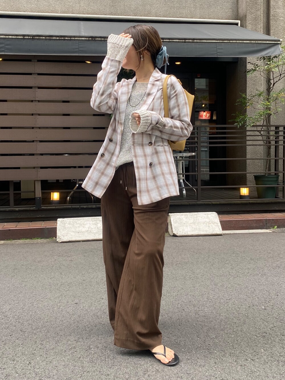1日の中でも気温に差が出るこの時期は ジャケットあわせがおすすめです。 インナーをキャミにして抜け感を出して着たラメニットに 新作のチェックジャケットを合わせました。 ジャケットは薄手なので、腰に巻いたり、シャツ感覚で使えるくらいには 軽い着心地になっています。 夏のアウターにバリエーションが欲しいときに、柄のアイテムはおすすめです◎ _______________________ [ニット]color:シルバー size:フリー [ジャケット]color:オフ size:フリー [パンツ]color:ブラウンsize:38 [バッグ]color:イエロー comming soon ________________________ いつもご覧頂きありがとうございます! 他のSNSも日々投稿をしているので ぜひそちらも見ていただけると嬉しいです◎ insta@___saku14_ WEAR@doudousakura TikTok@doudousakura