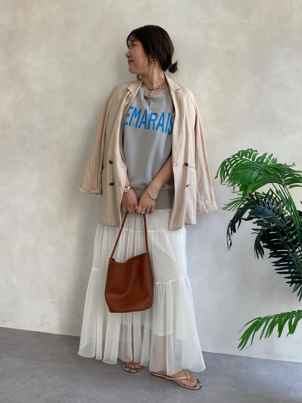 sakura(DouDou)のテーラードジャケット「リヨセルリネンジャケット」を使ったコーディネート