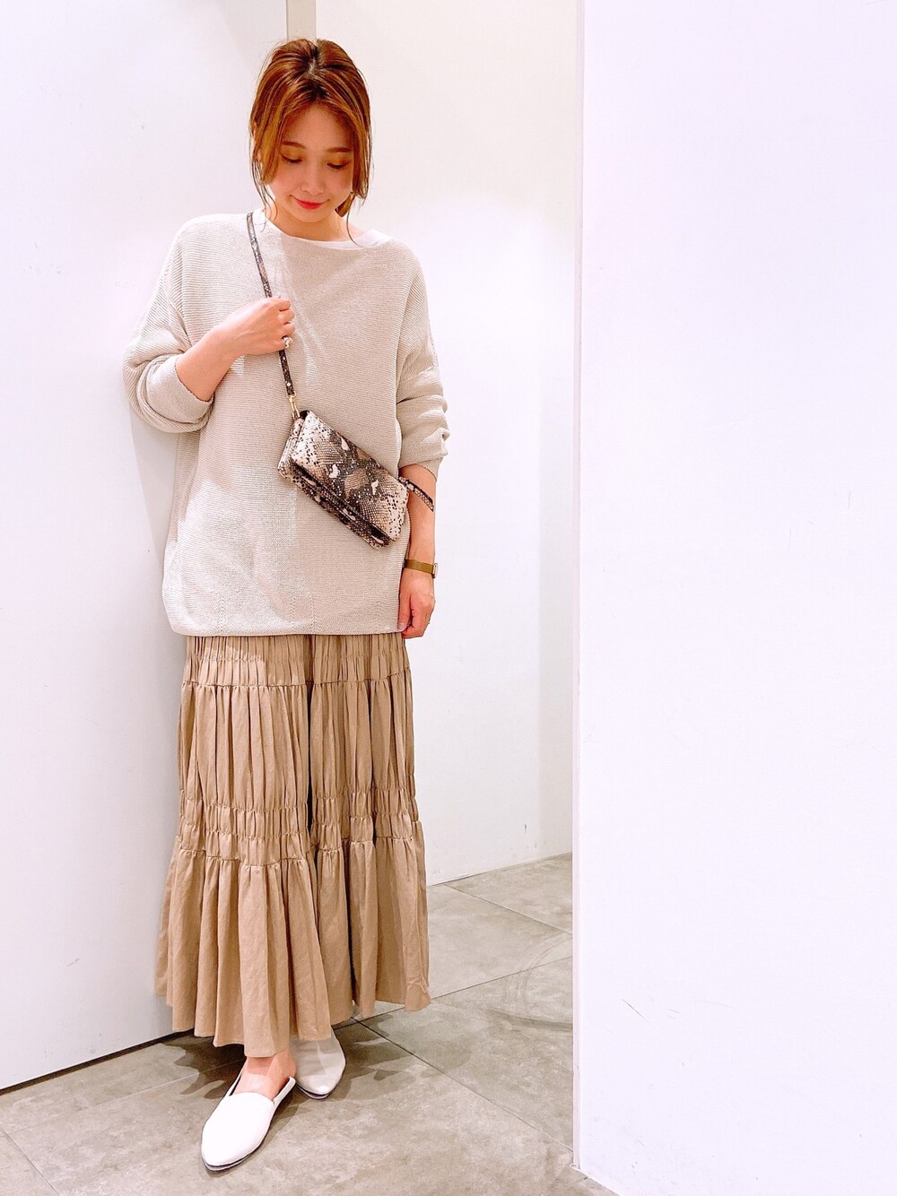 ロング丈×ロング丈で今っぽく! パイソンウォレットはアクセサリー感覚で持てます!