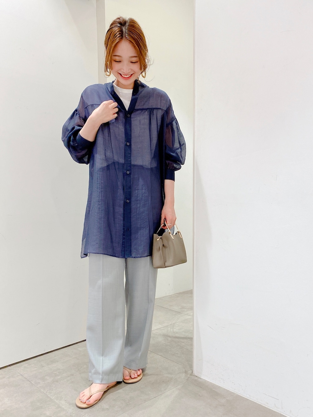 濃い色でも透け感があるので軽やかに着られるブラウスです!