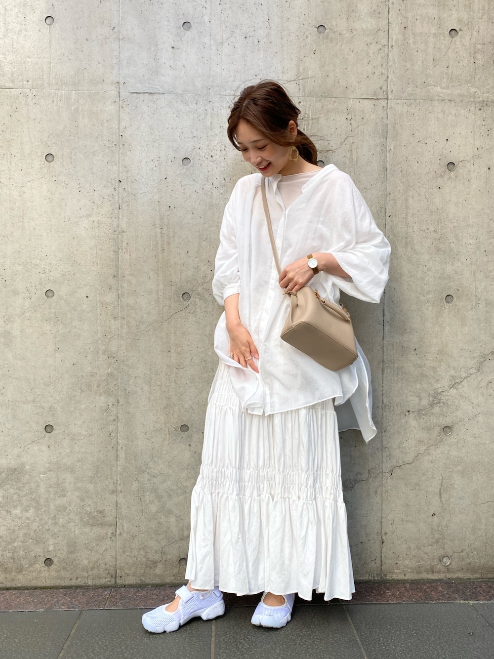 ホワイトコーデで女子っぽく! スニーカーではずしました! Instagram → @taka__1106