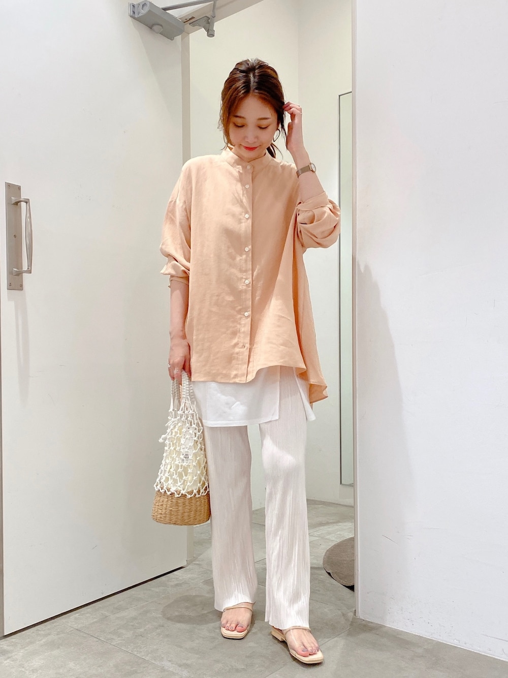 夏らしいオレンジ🍊コーデ! インナーにロングタンクを入れたのがポイントです! Instagram → @taka__1106