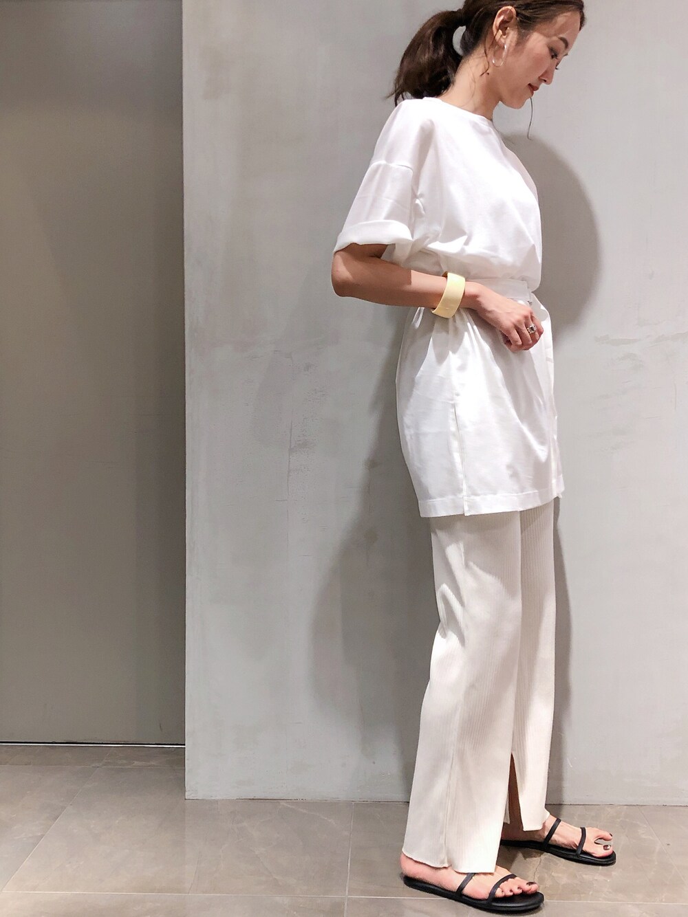 ホワイトコーデ! パンツ綺麗だし、楽だな♥︎ 足の指が立ってしまうのが癖 いつもいいね!ありがとうございます😊