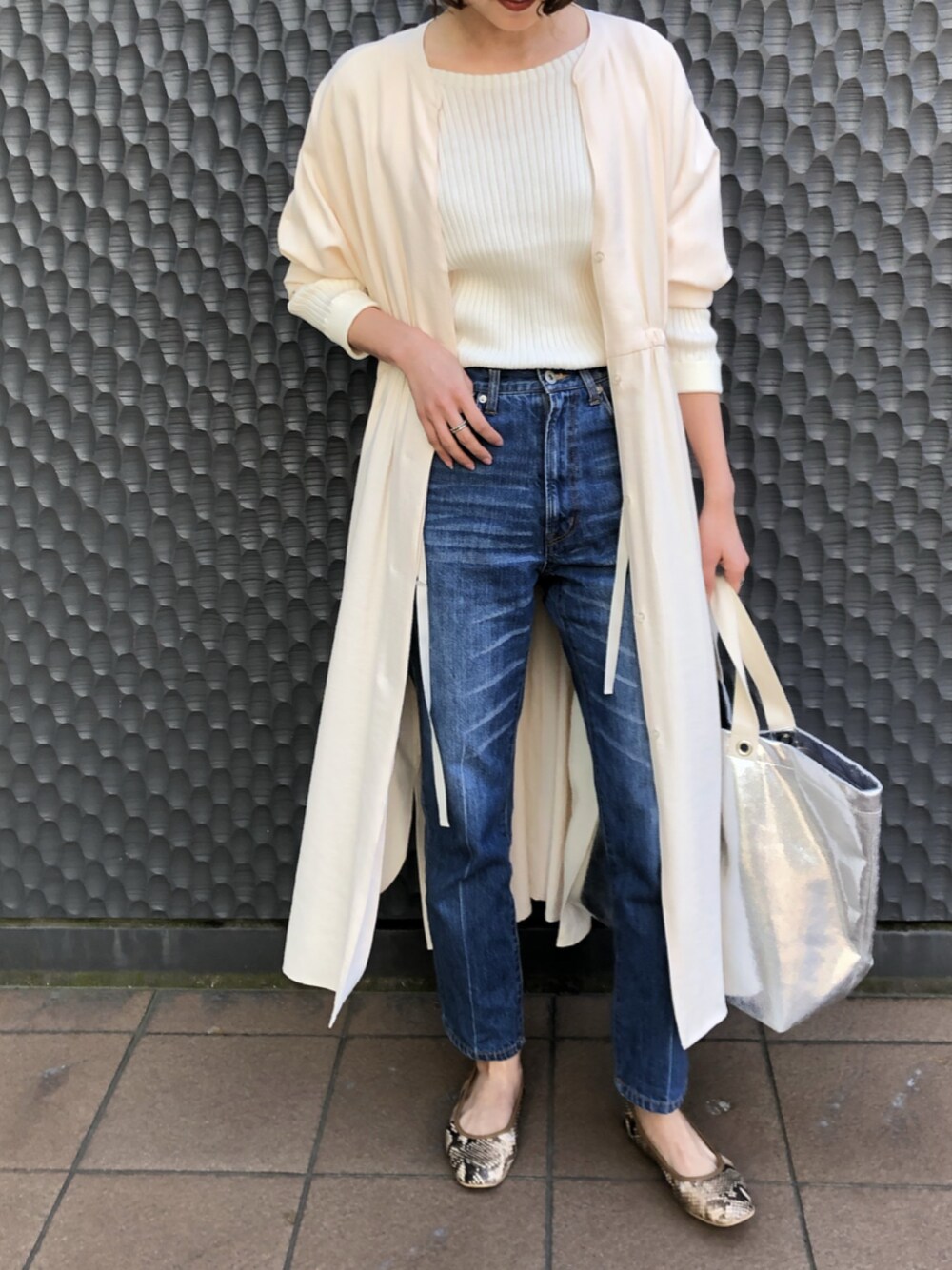 ロングコートはシンプルにデニムで💯 ご覧頂きありがとうございます😊