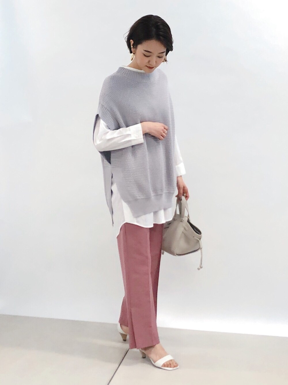 DouDou_serika(DouDouアミュプラザ博多店)のニット/セーター「ニットベスト×シャツセット」を使ったコーディネート
